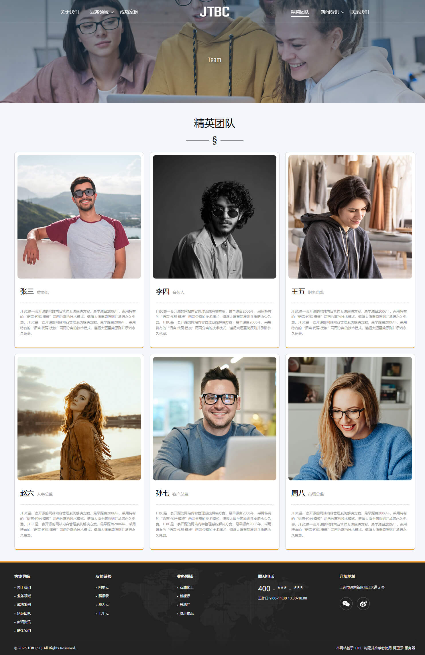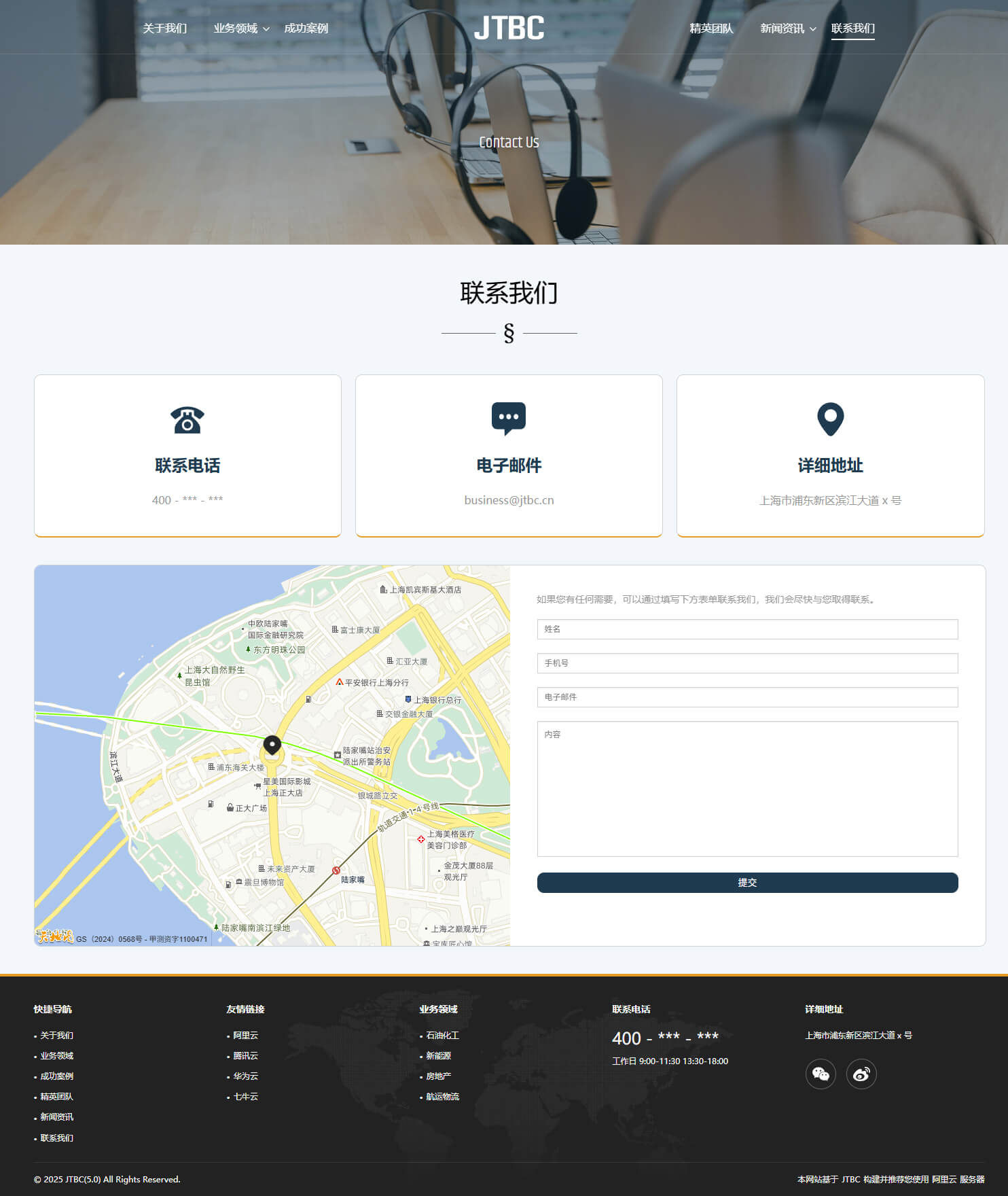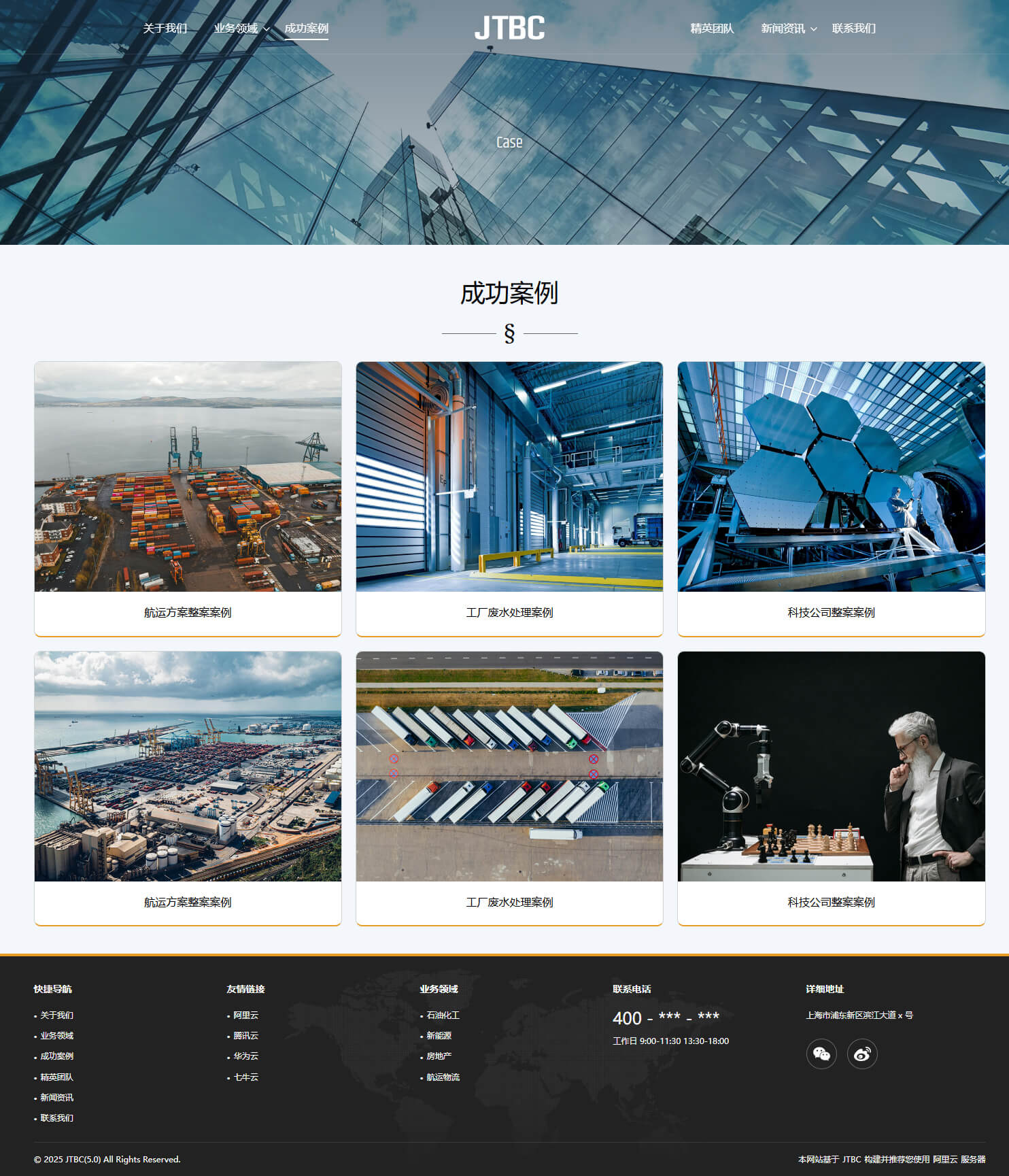 - 具备“关于我们、业务领域、成功案例、精英团队、新闻资讯、联系我们”等栏目