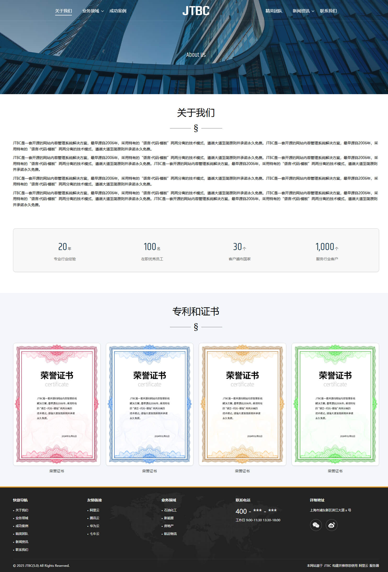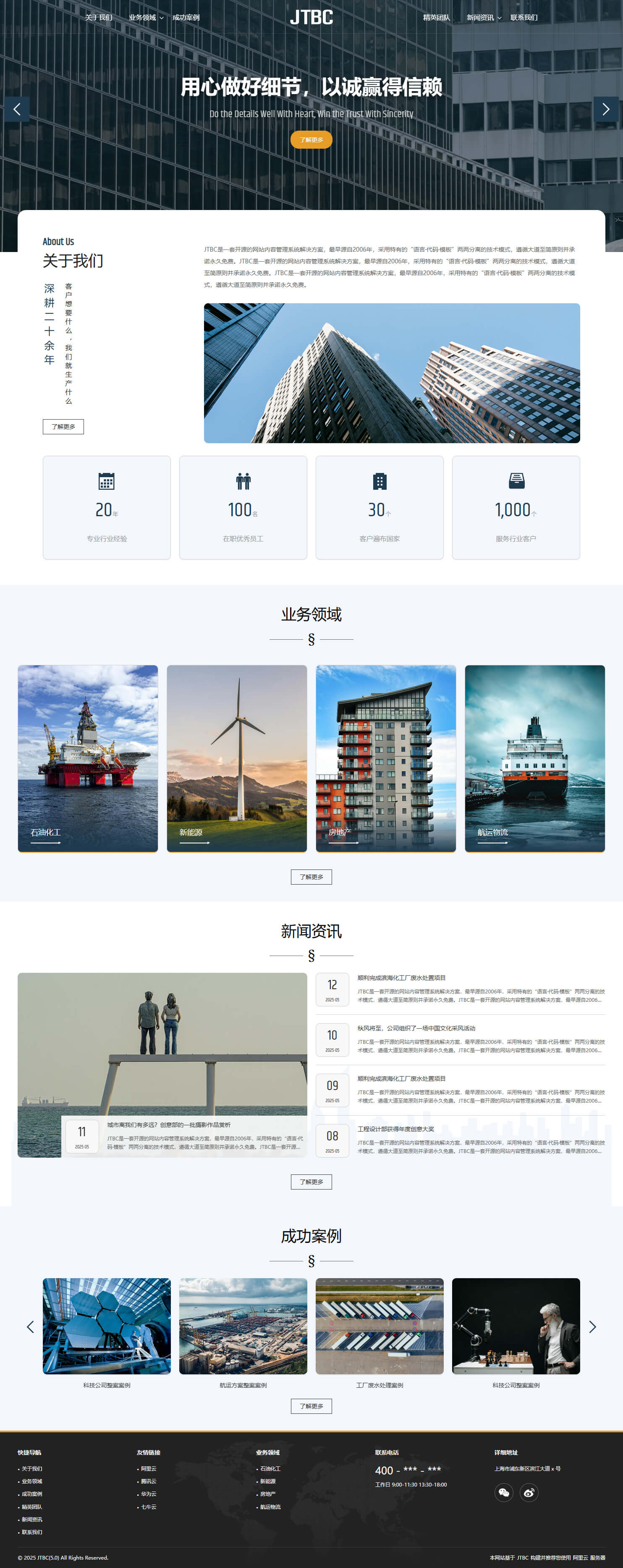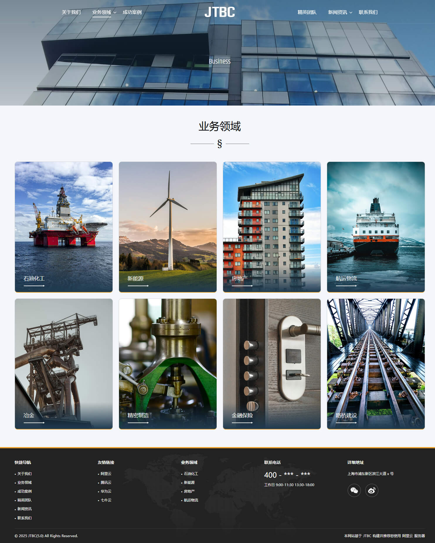 - 具备“关于我们、业务领域、成功案例、精英团队、新闻资讯、联系我们”等栏目