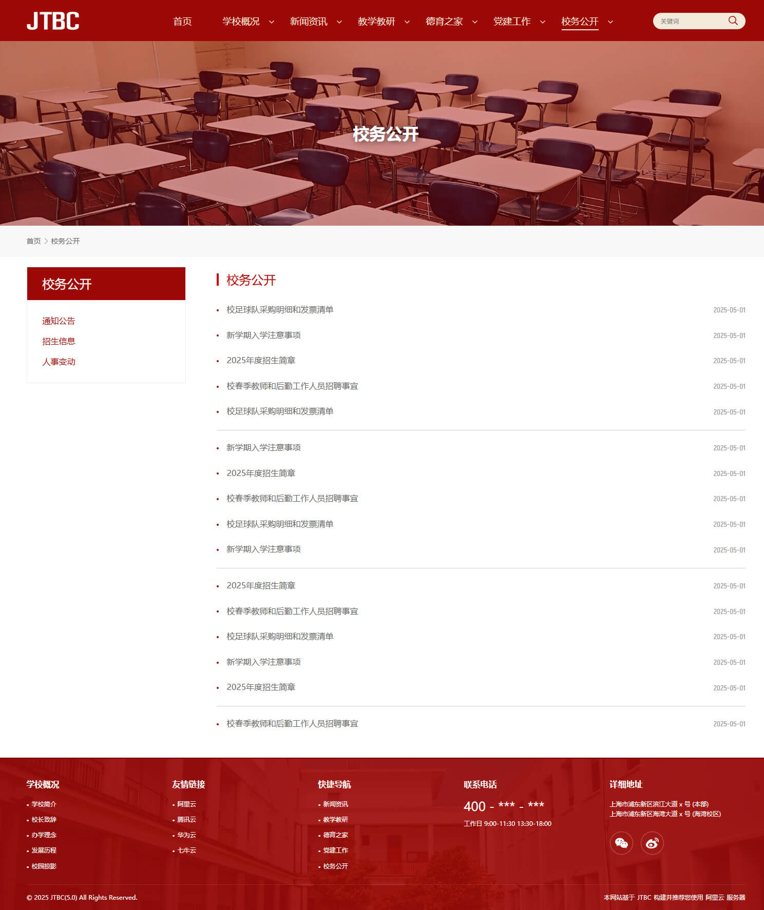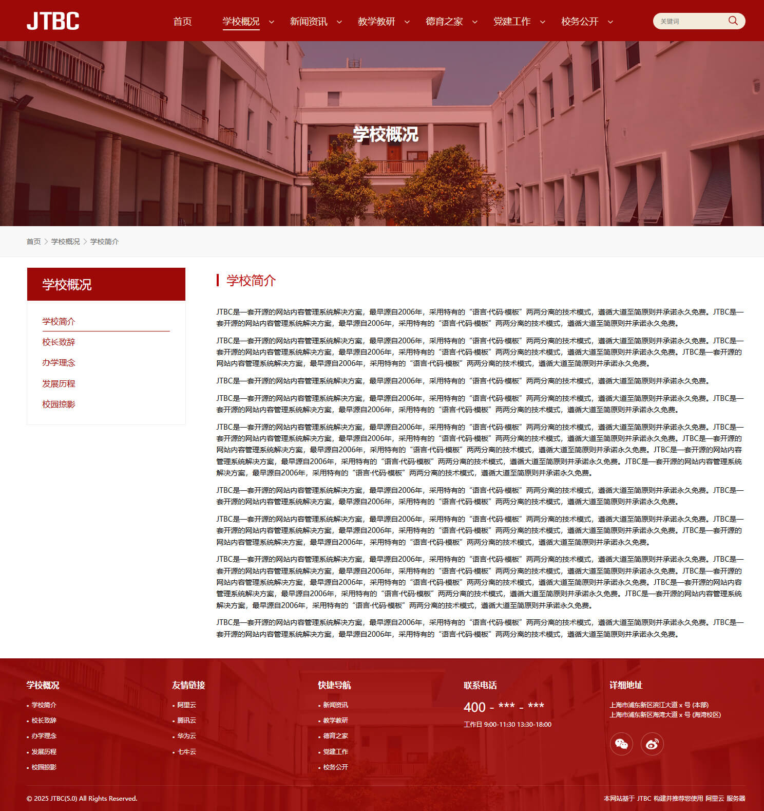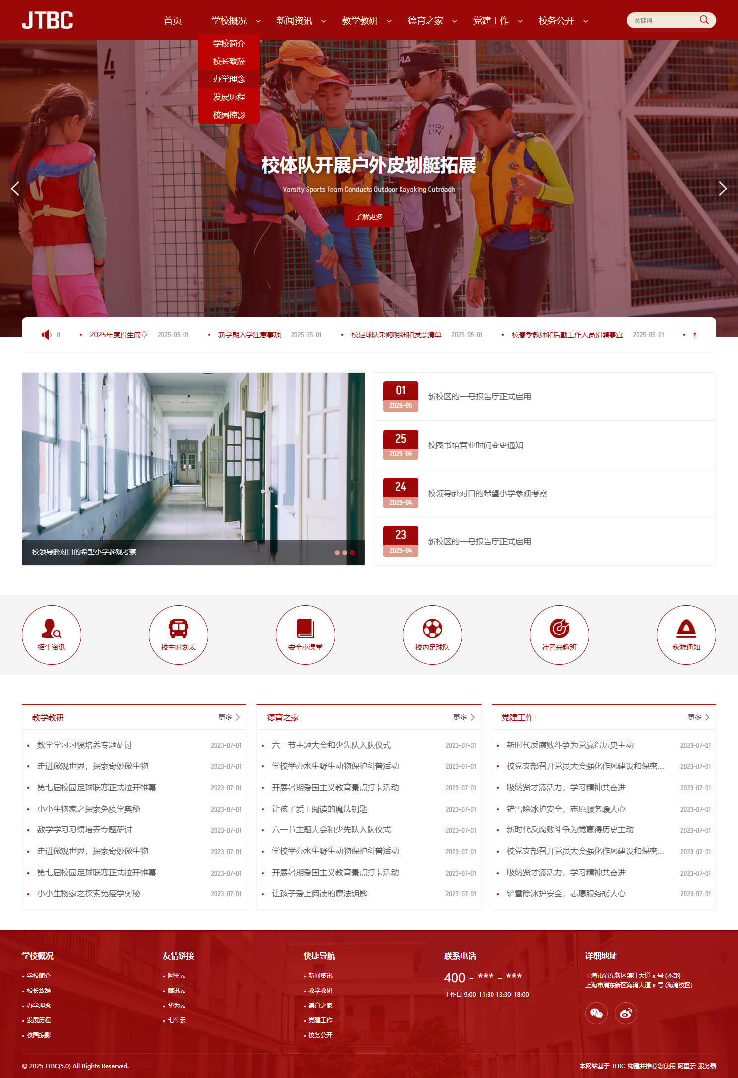 - 具备“学校概况、新闻资讯、教学教研、德育之家、党建工作、校务公开”等栏目