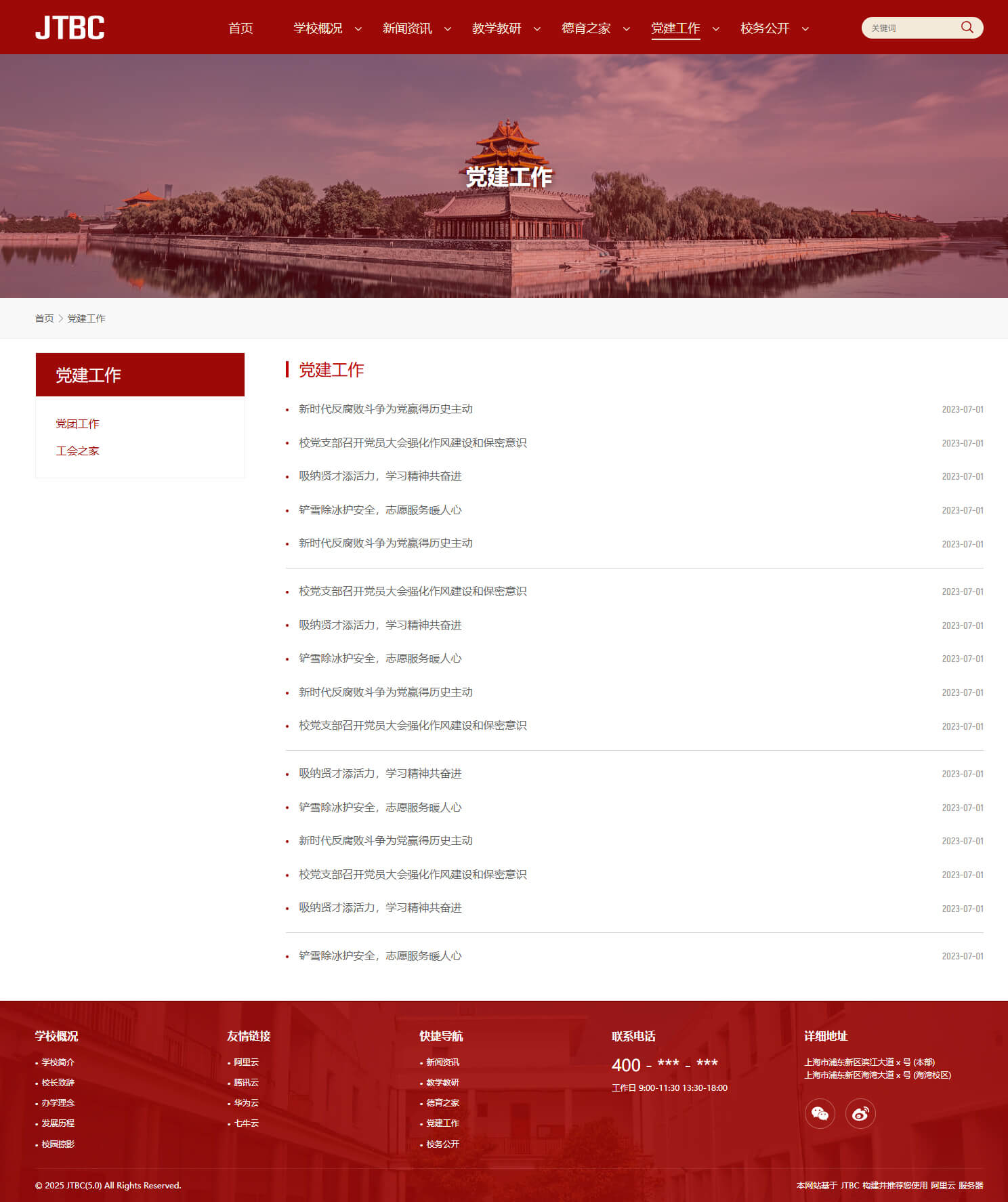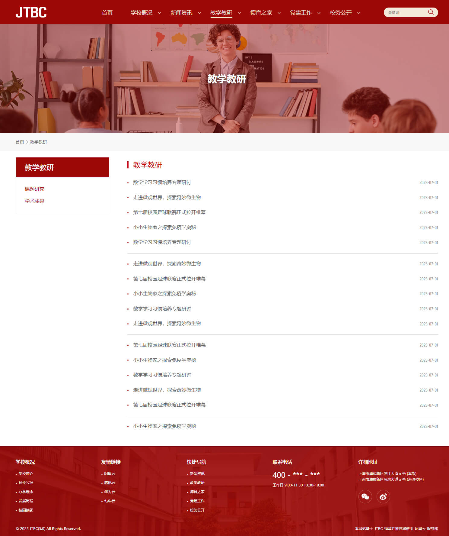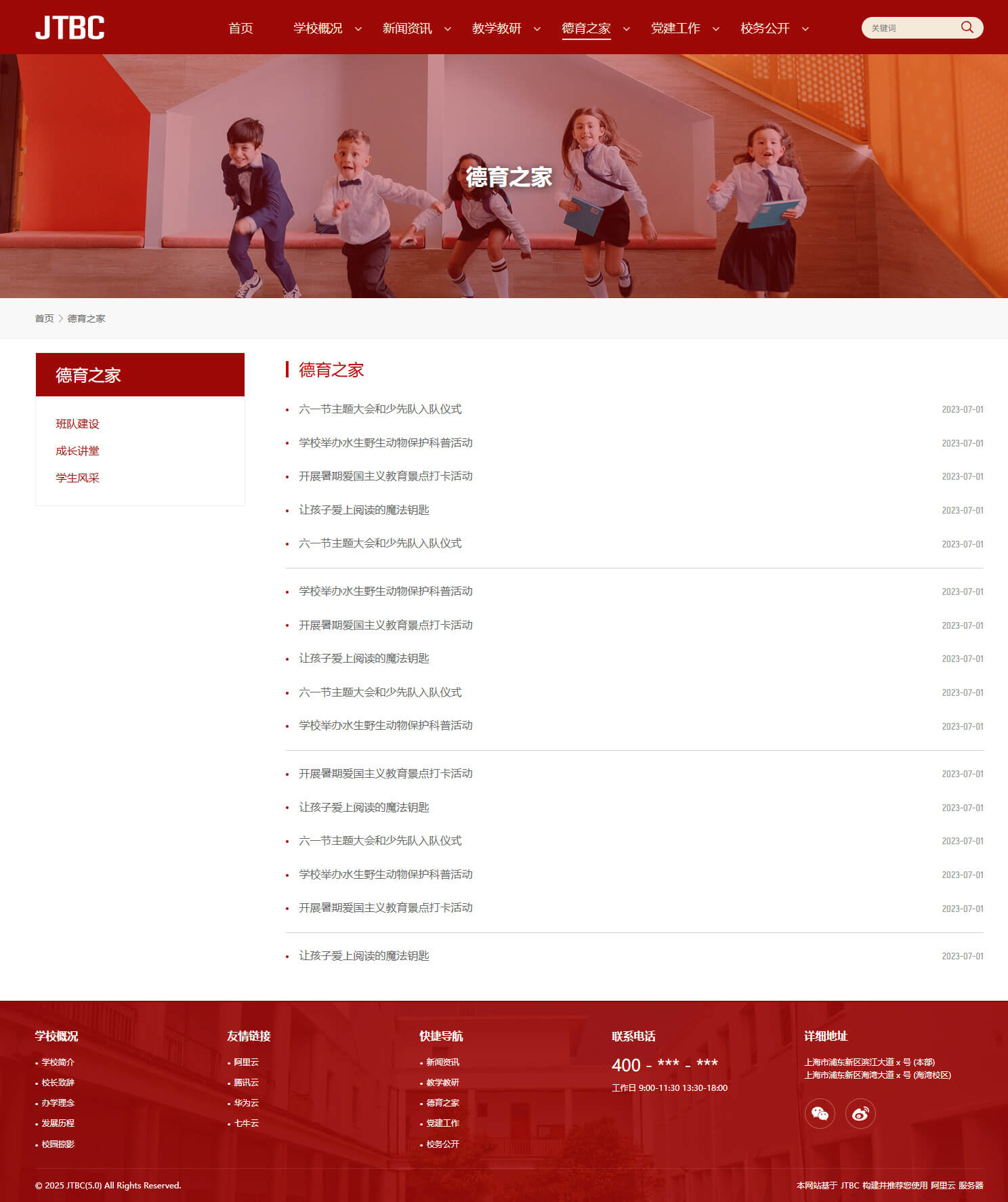 - 具备“学校概况、新闻资讯、教学教研、德育之家、党建工作、校务公开”等栏目