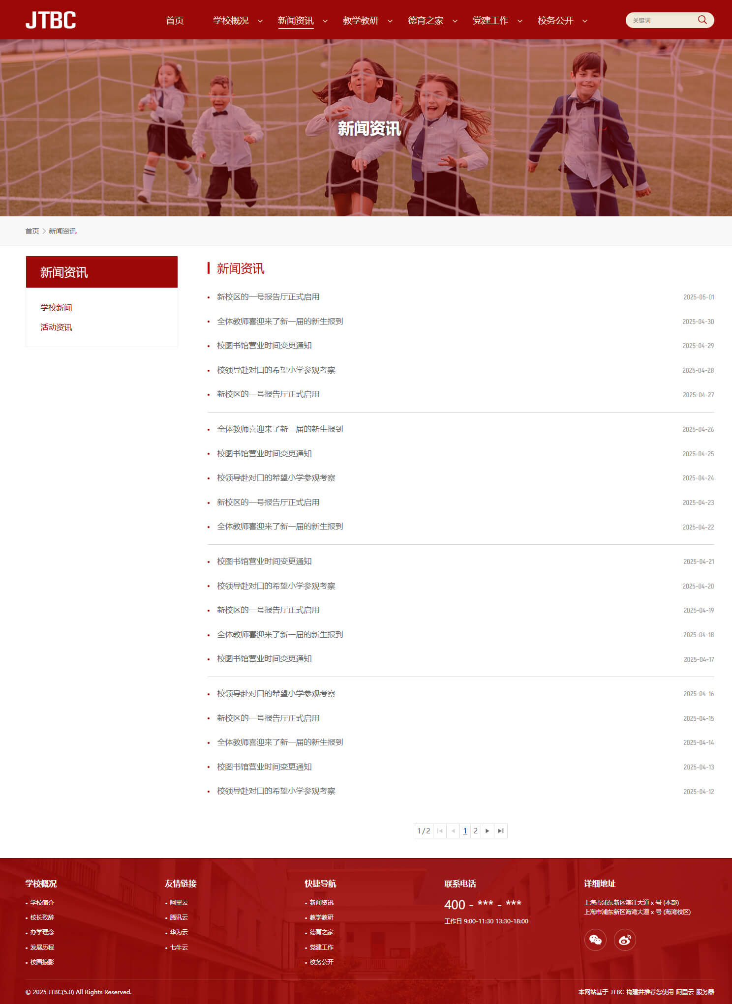安装本整体应用包之后,将变成一个红色系的中小学通用的学校网站