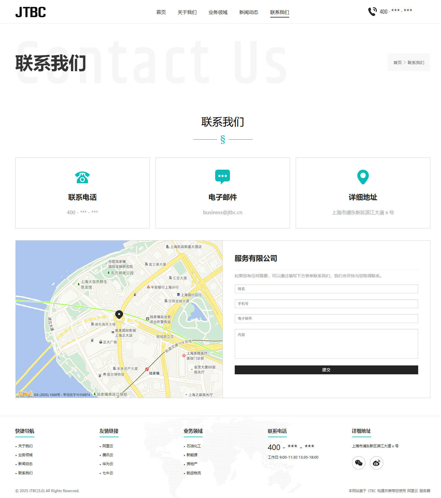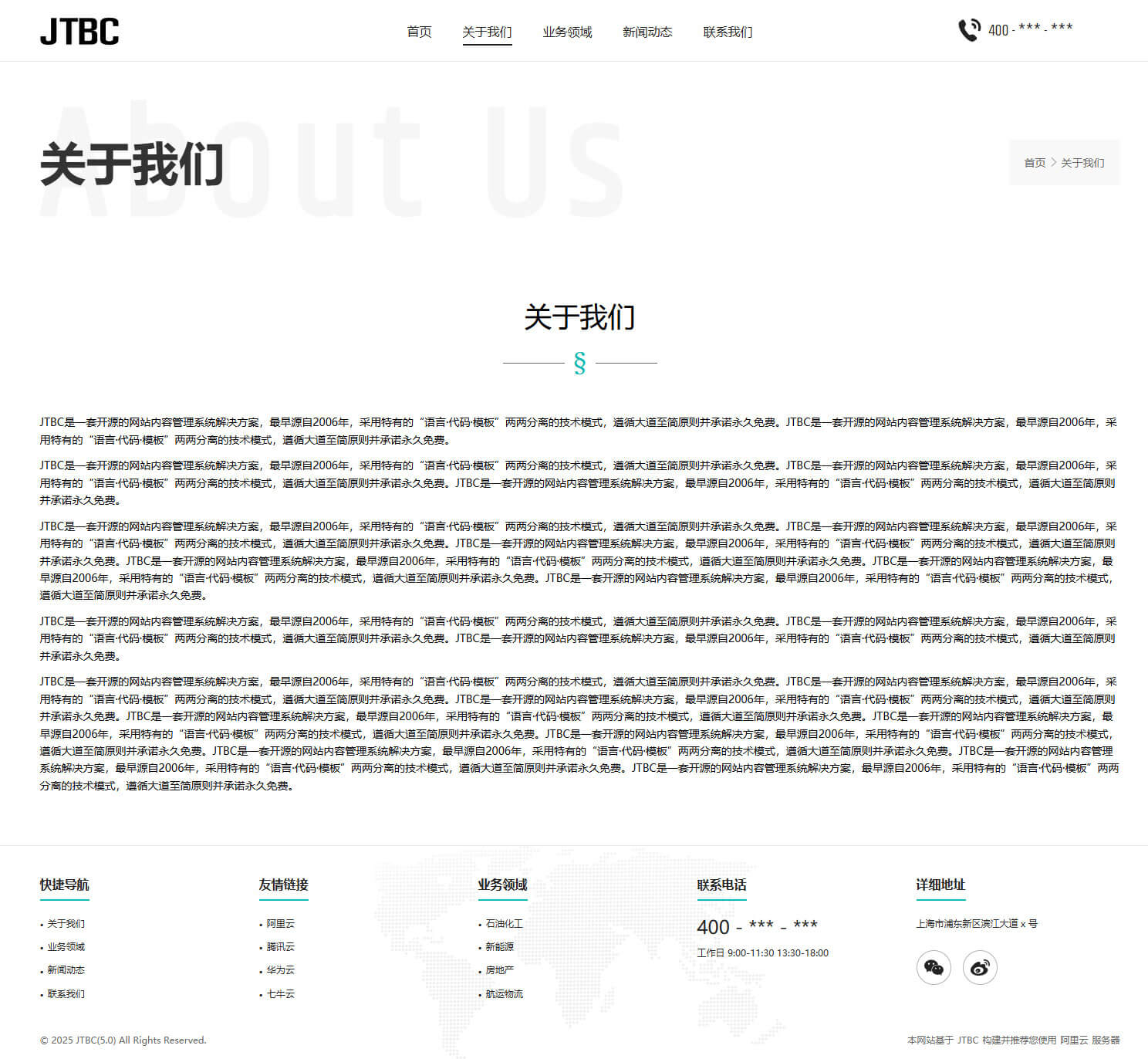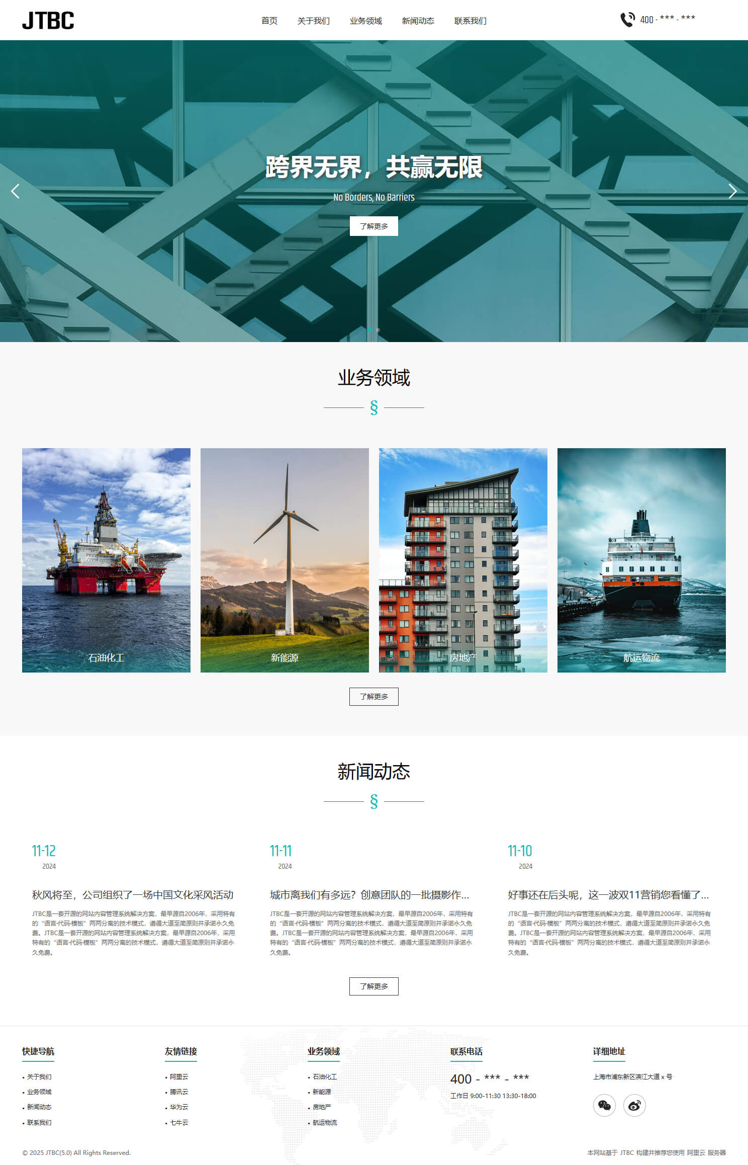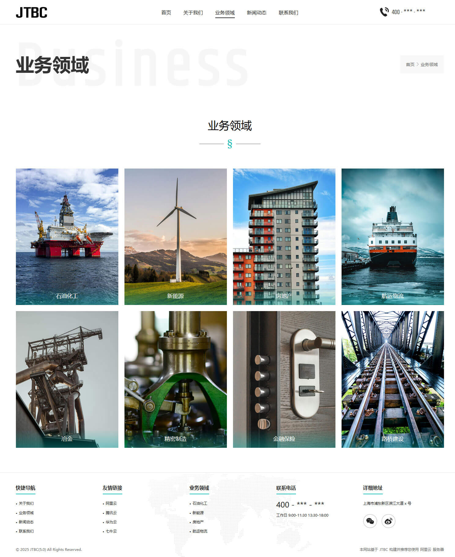 - 具备“关于我们、业务领域、新闻资讯、联系我们”等栏目