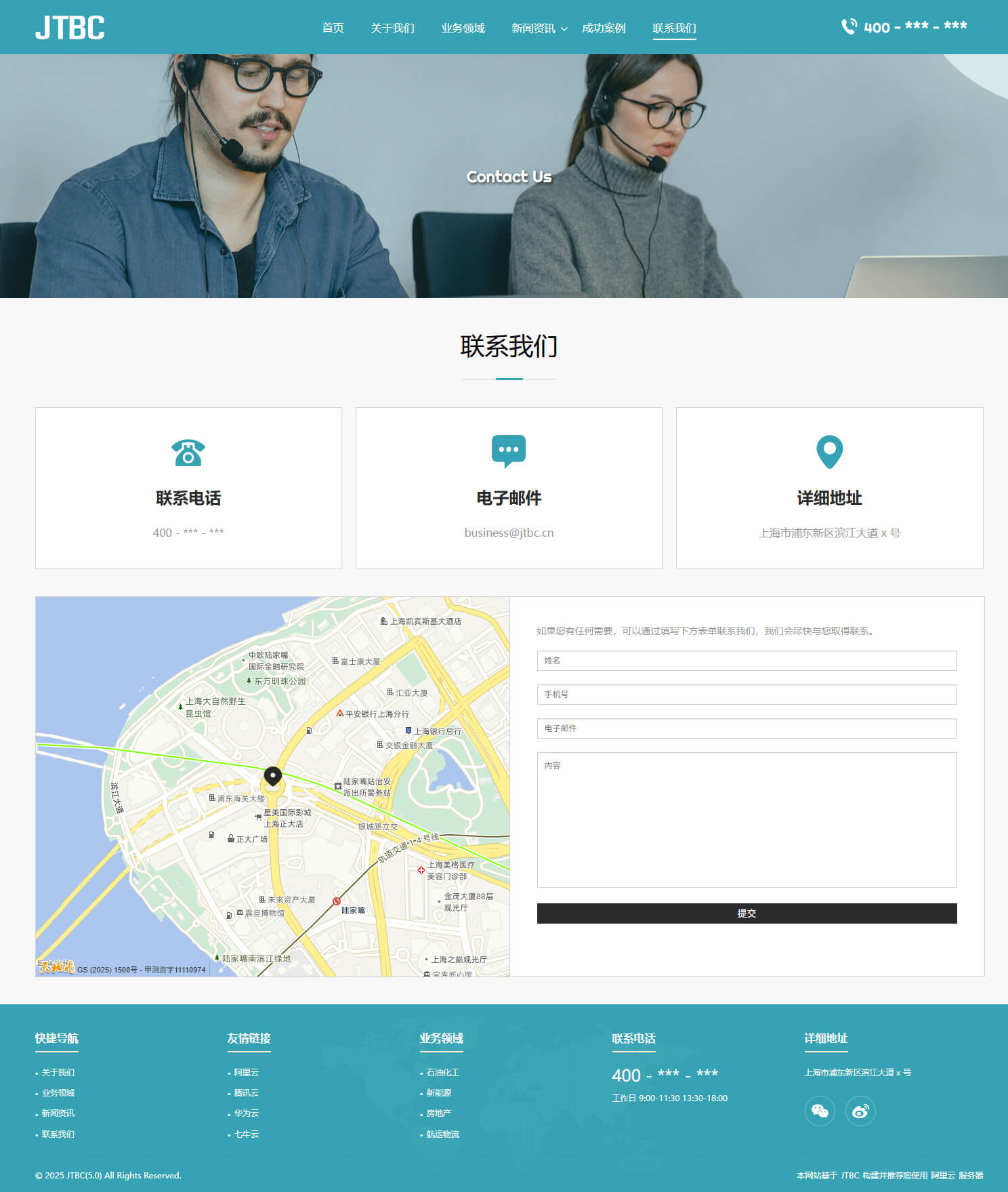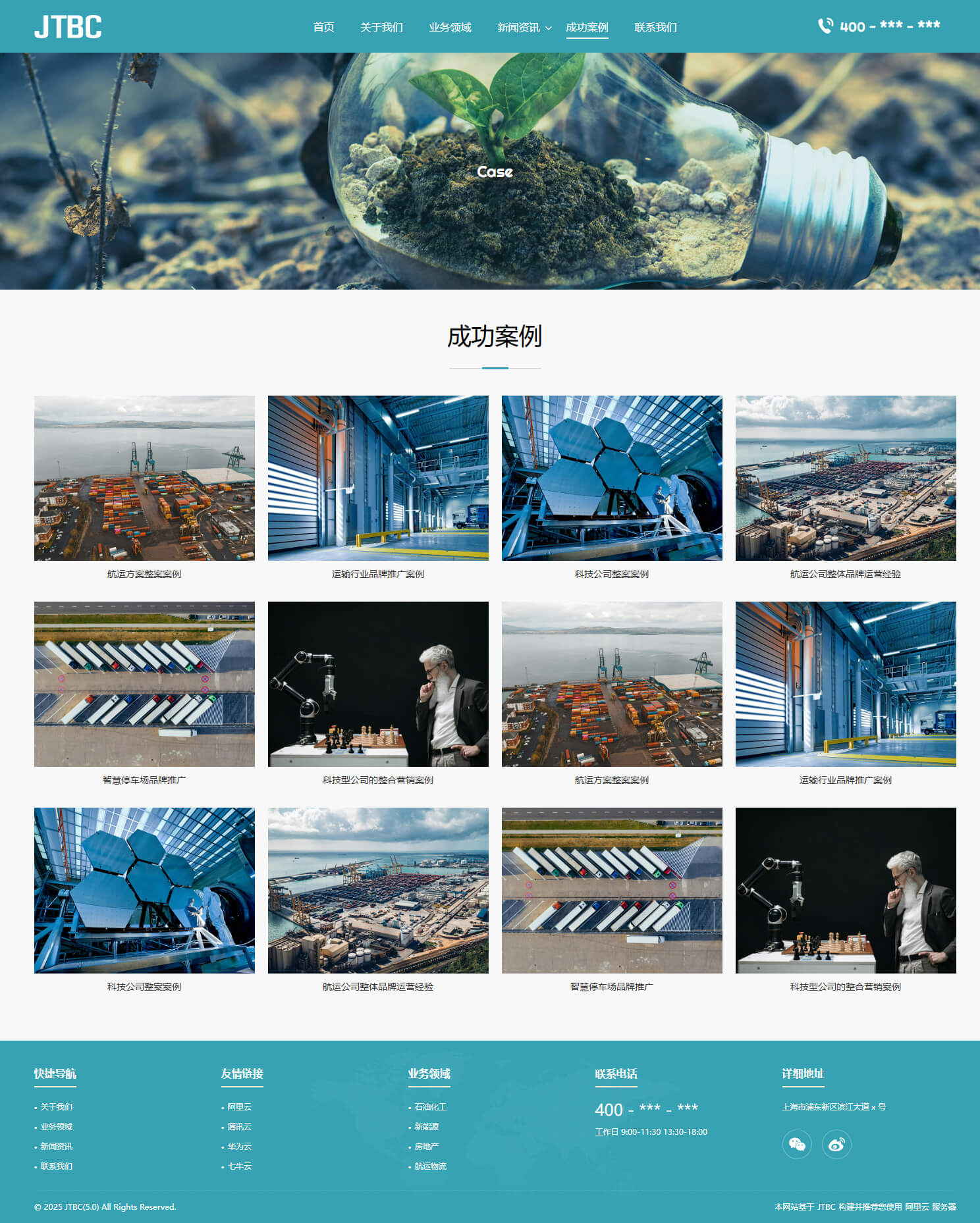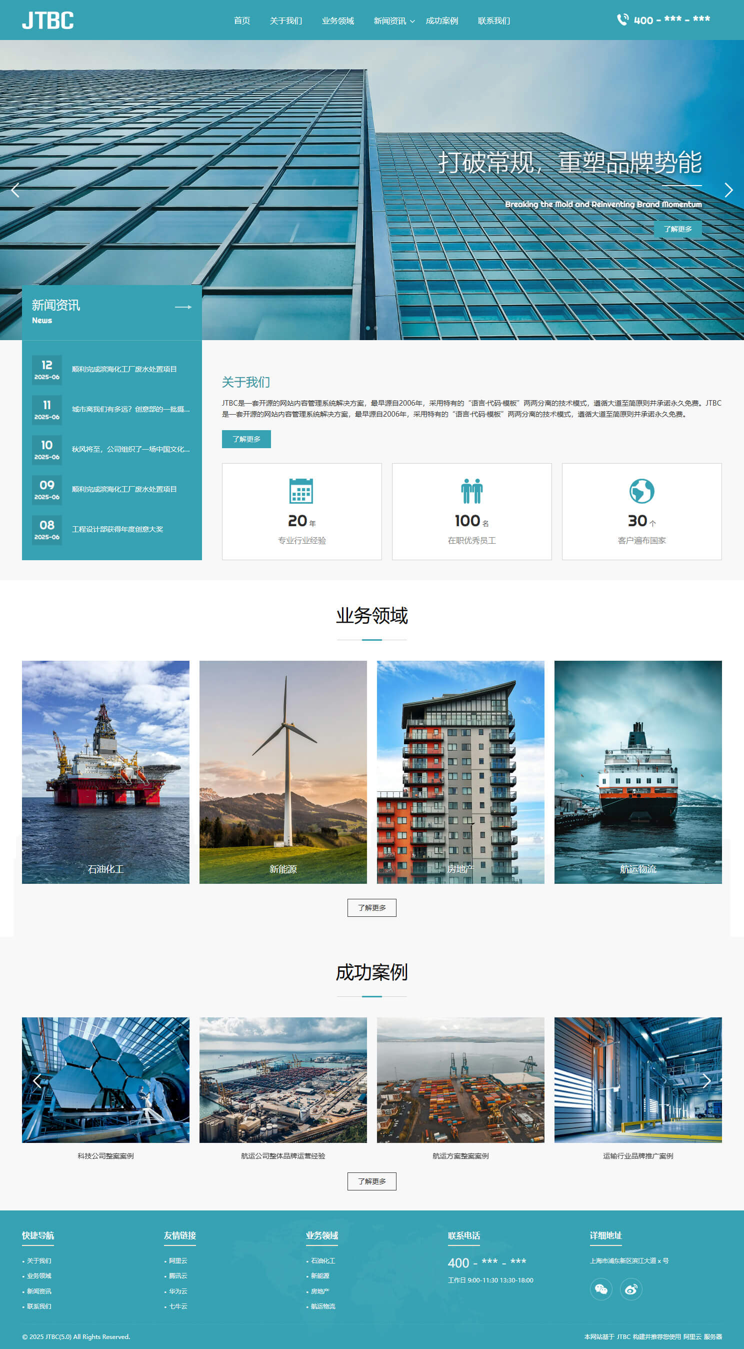 - 具备“关于我们、业务领域、新闻资讯、成功案例、联系我们”等栏目