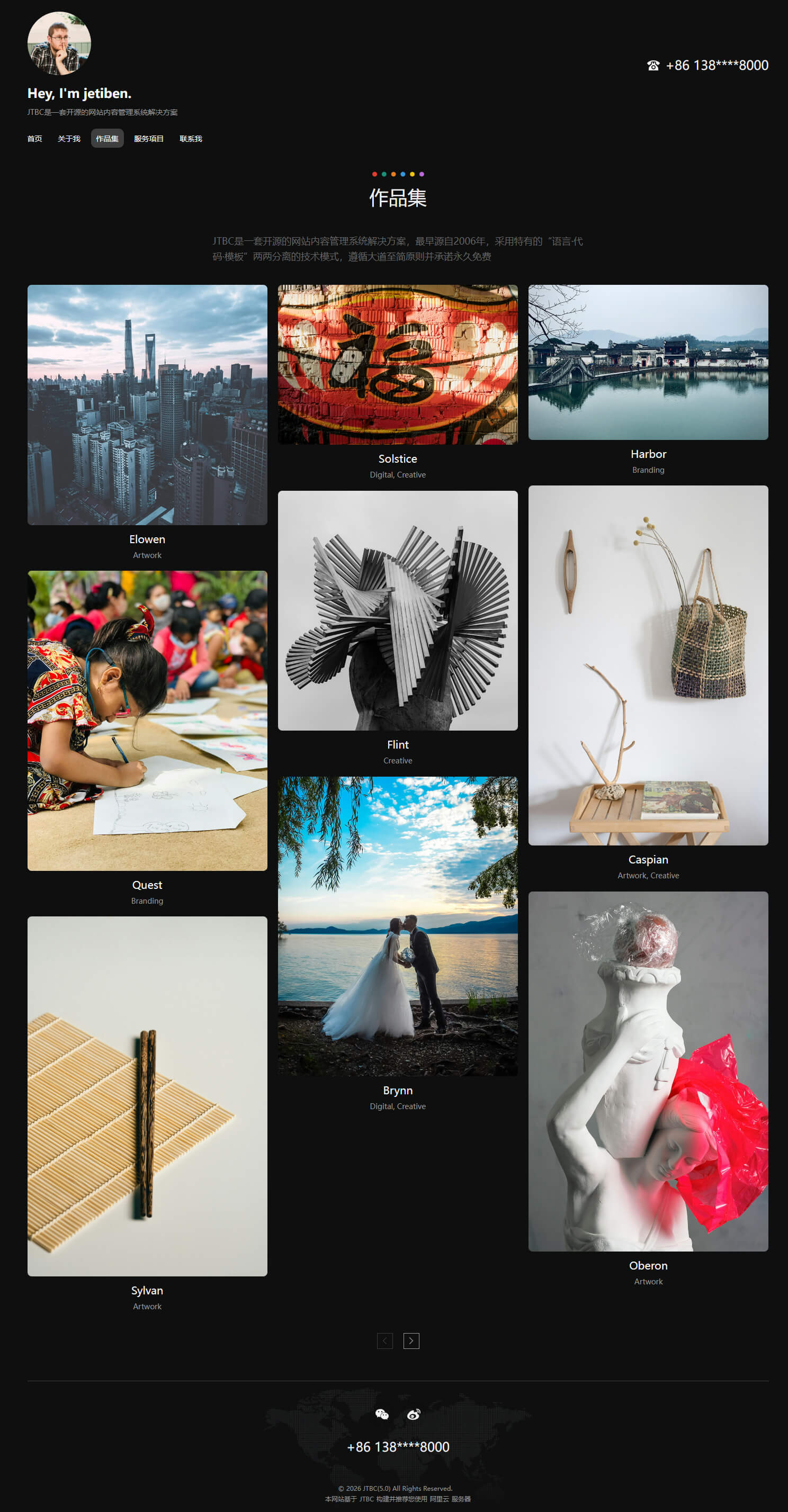 安装本整体应用包之后,将变成一个暗色系个人作品集网站
